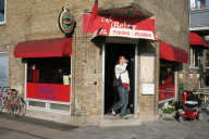 Man kan måske tilgive Københavnsguiden at vi aldrig tidligere har anmeldt den ærværdige Sjælør Bodegas efterfølger, for på facaden fører Fik-Ret sig frem som spillecafé. Ved nærmere eftersyn og hjulpet på vej af en af de lokale konstaterer vi at der faktisk er tale om et værtshus i noget nær Sjælørtraditionen. Her er ganske vist lidt skummelt, for lyset trænger dårligt gennem de blyindfattede, tonede ruder, og det aldeles træbeklædte indre giver indtryk af at sidde i en cigarkasse, men ellers er det hele som forventet. Det samme sydhavnspublikum cirkulerer vist rundt mellem områdets ydmyge og herligt uspolerede værtshuse, og når Engholm og Mozarts Bodega lukker tidligt om søndagen, bliver det højlydt misbilliget her på Fik-Ret. Her kræver man til gengæld hunden i snor og forbyder børn efter kl. 20, og det skal såmænd nok blive kommenteret på Sydvest og Betty. Nu har vi været rundt i Sydvest i nogle timer på en søndag hvor Frem har præsteret at tabe 6-0, og hverken vi eller de øvrige gæster er blevet mere ædru eller klarere i mælet efterhånden som tiden er gået, men det gør ikke noget. Der er stadig noget stærkt og sundt over Ankers gamle kvarter hvor flaskerne skramler og Laban spiller på et fyldt værtshus. Stedet er i øvrigt opkaldt efter en af ejerne, som hedder Fikret, og det kan vel være lige så godt som at opkalde det efter en station. Rygning. | ||||
