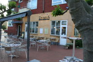 Mon ikke den grasserende finanskrise delvist kan forklares med ubegrundet optimisme og dårligt underbyggede forventninger til investeringers afkast? Den slags giver jo bagslag, lige fra IT Factory til amerikanske huspriser, og gad vide om vi ikke har fundet et beskedent sydhavnseksempel i Reubens? Det gamle Stubbens er blevet lyst og cafésterilt, og det omkringliggende kryds mellem Stubmøllevej og Rubinsteinsvej er vist også blevet opgraderet med pæn brolægning på en lille plads hvor Reubens har stillet borde ud til gæsterne. Her sidder et par damer og nipper til deres rødvin, mens de har udsigt til en ældre landevejsridder som sidder på den anden side af vejen og småsynger for sig selv og et batteri af tomme elefantflasker. Sådan mødes det gamle og det nye Sydvest i al fordragelighed, og det er faktisk også tilfældet inde på den nyindrettede café. Det nye repræsenteres af cafémøblement og eksotisk øludbud, og det gamle kæmper tilbage i form af et hættetrøjeklædt selskab som drikker deres Tuborg af flasken og pulser lystigt løs på deres Prince. Om bartenderen siger vi bare at der ikke er tale om en af den slags nipsgenstande som typisk befolker de moderne caféer, og vi glæder os over at sydhavnsrødderne har vundet første omgang mod caffelattesegmentet, men det havde nu været billigere og mere miljøvenligt at lade Stubben bestå. Rygning. | ||||